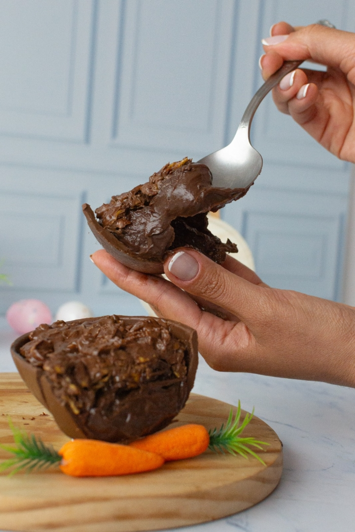 O ovo mais vendido de 2025. Um ovo com as duas cascas recheada e trufadas artesanalmente, . Escolha o sabor de sua preferencia. Contém duas cascas, que formam um ovo de 550g (Casca referencia 500g). Embalado em tule e enviado em sacola de presente com laço e tag.